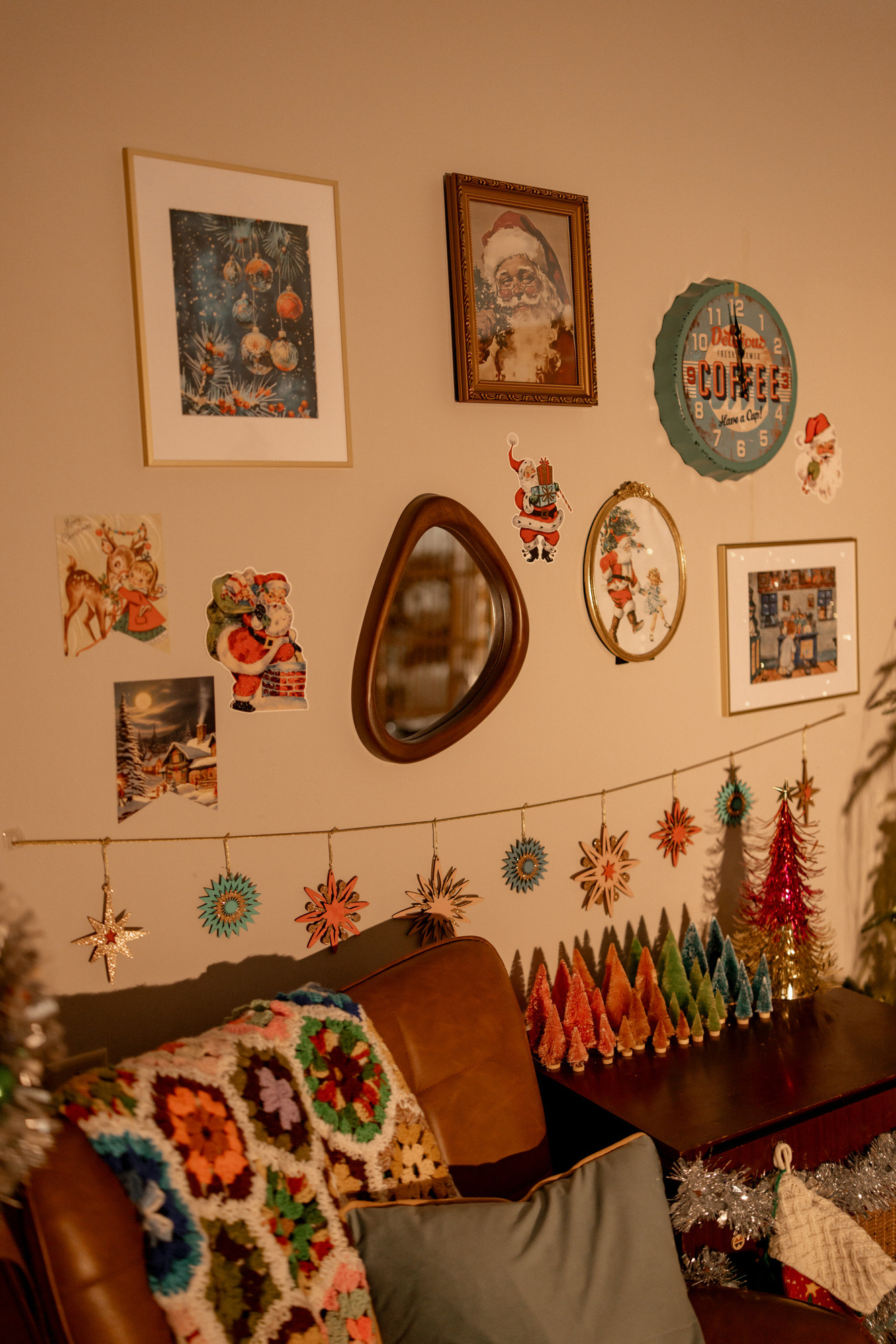 Think: a tinsel-covered tree, vintage box TV, shag carpet, and all the mid-century magic you didn’t know you needed. The space is professionally designed by Alt Design, known for turning studios into unforgettable seasonal sets, and this one is full of warm, nostalgic charm.
